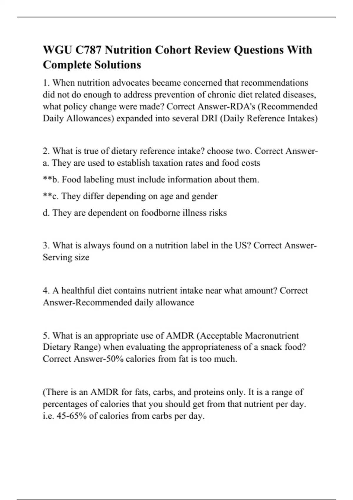 WGU C787 Nutrition Cohort Review Questions With Complete Solutions