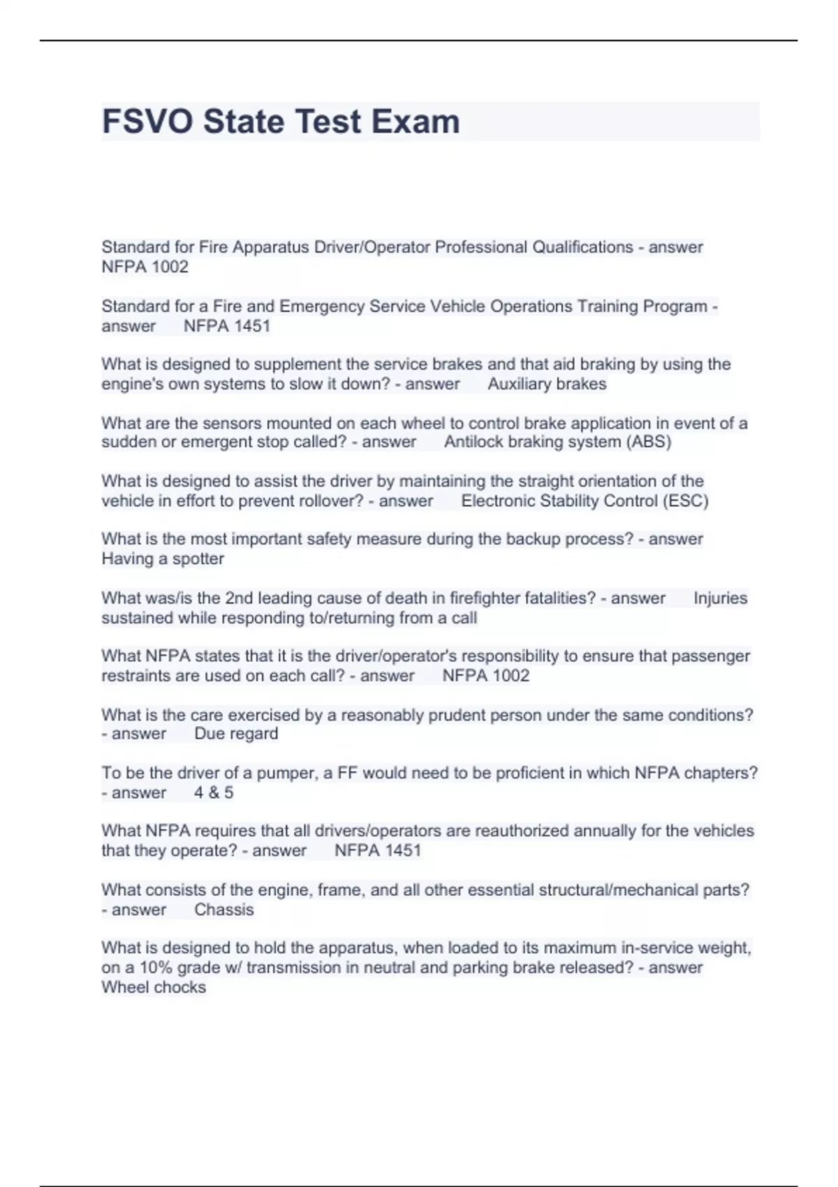 FSVO State Test Exam
