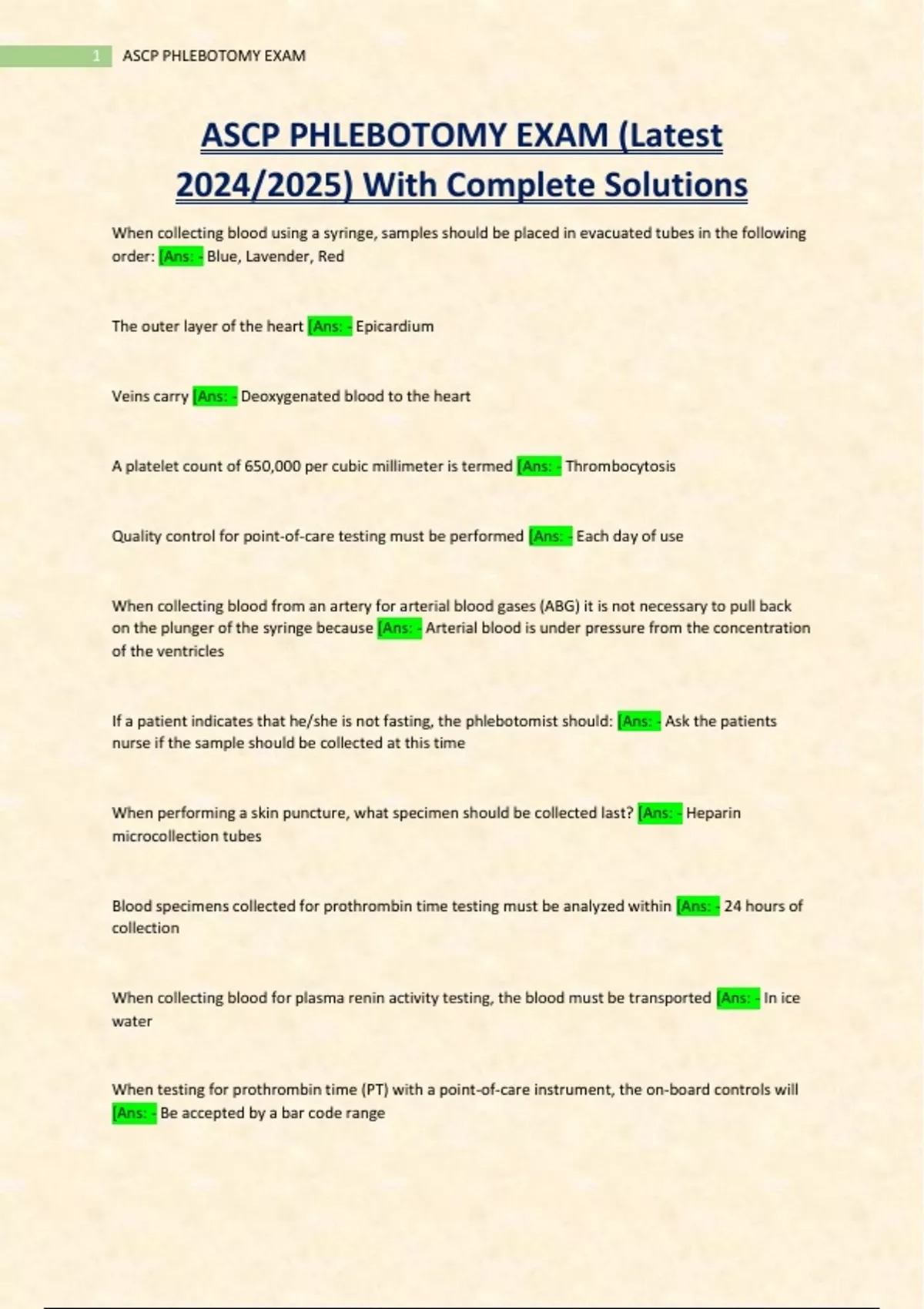 ASCP PHLEBOTOMY EXAM (Latest 2024/2025) With Complete Solutions,ASCP PHLEBOTOMY EXAM (Latest 2024/2025) With Complete Solutions,ASCP PHLEBOTOMY EXAM (Latest 2024/2025) With Complete Solutions