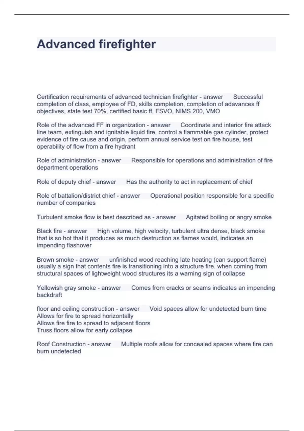 Advanced firefighter Questions and Answers Scored A+