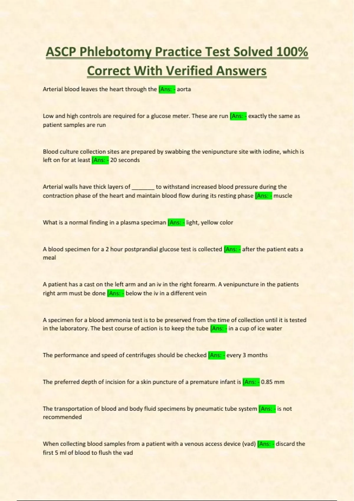 ASCP Phlebotomy Practice Test Solved 100% Correct With Verified Answers,ASCP Phlebotomy Practice Test Solved 100% Correct With Verified Answers