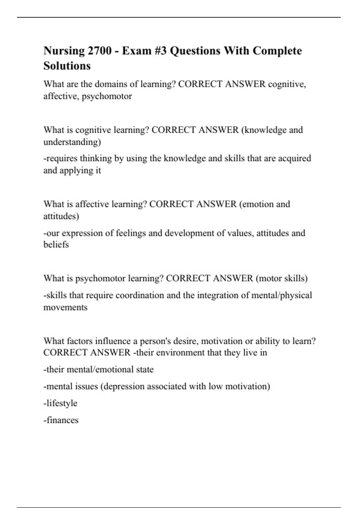 nursing 2700 exam 3 questions with complete sol