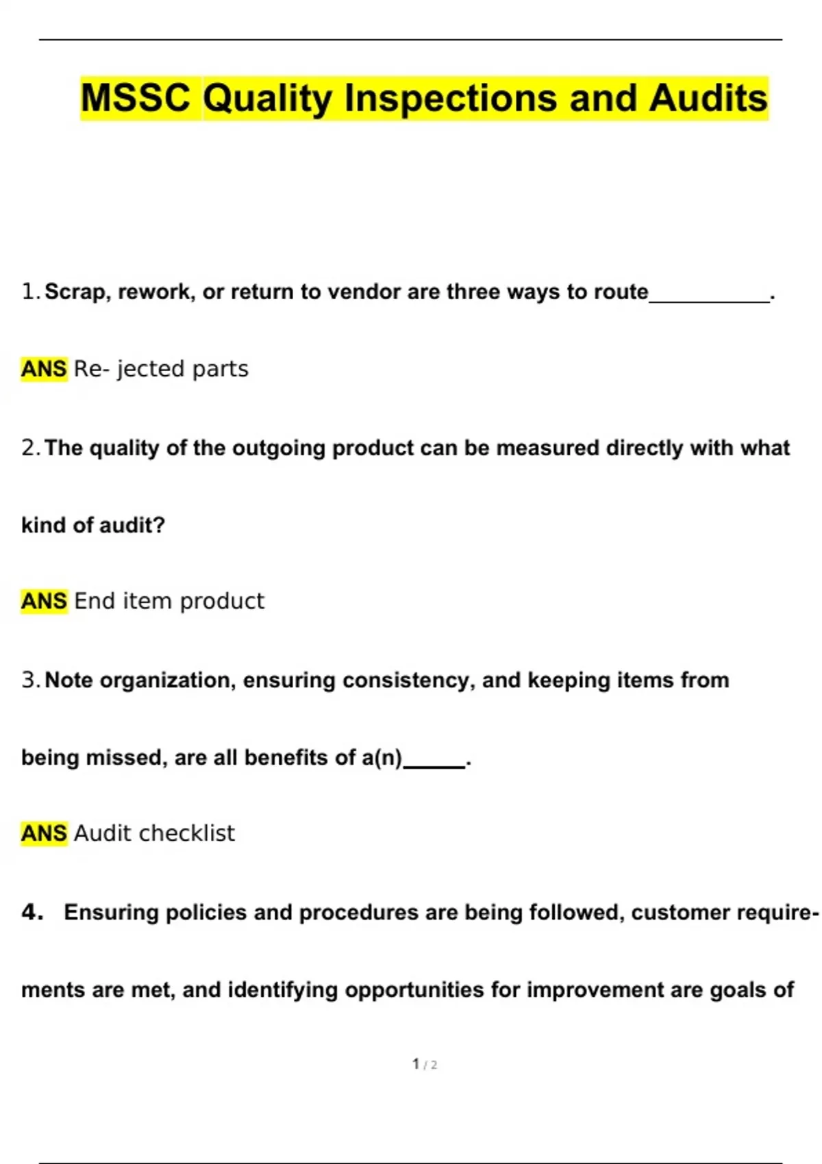 MSSC Quality Inspections and Audits Already Graded A+ Updated