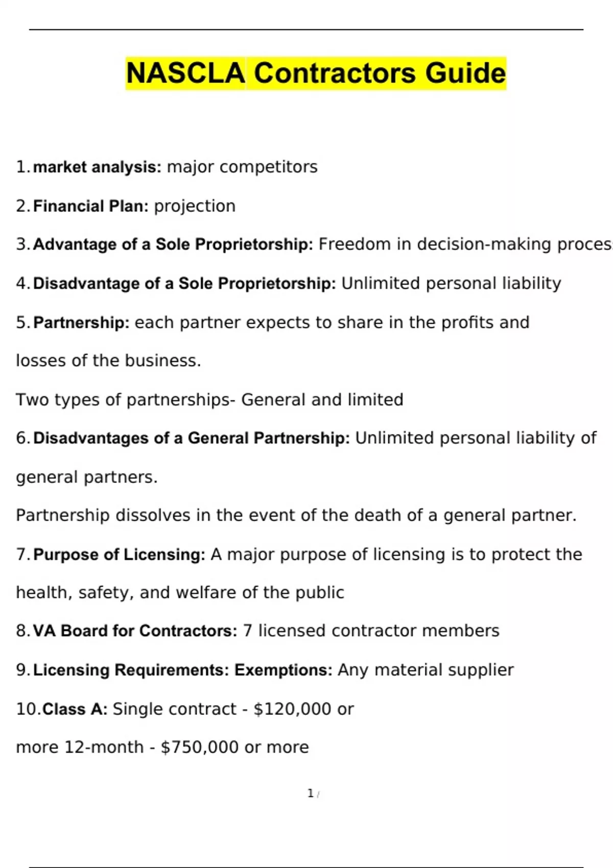 NASCLA Contractors Guide Questions With 100% Correct Answers