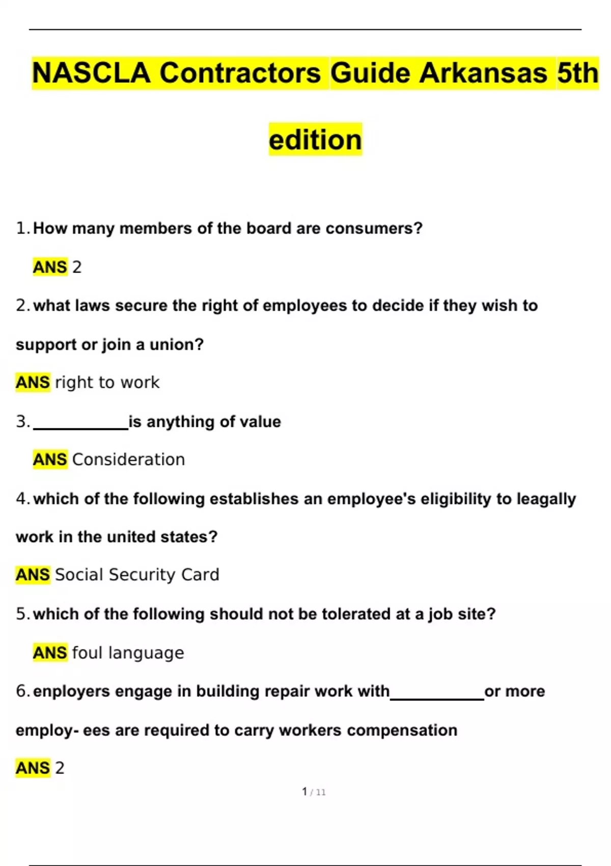NASCLA Contractors Guide Arkansas 5th edition Questions With 100% Correct Answers