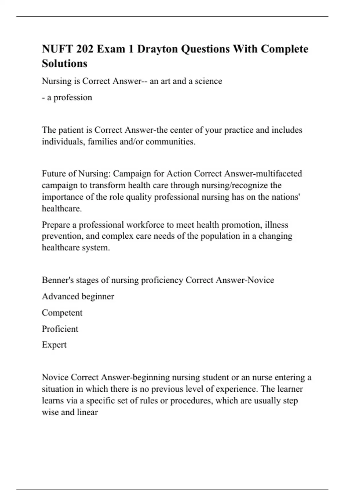 NUFT 202 Exam 1 Drayton Questions With Complete Solutions.