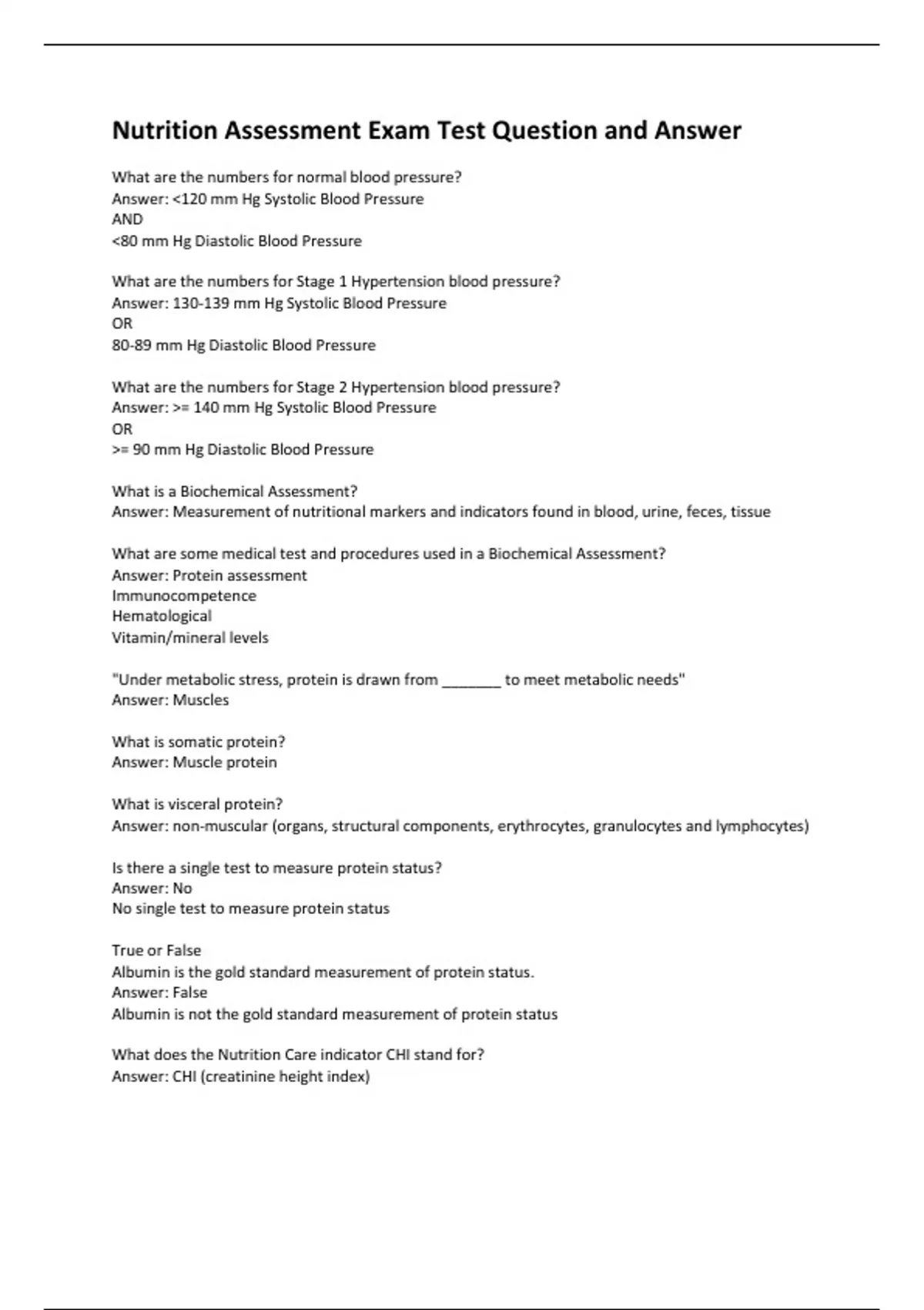 Nutrition Assessment Secrete Study Guide Exam Revision Test Questions and Answers