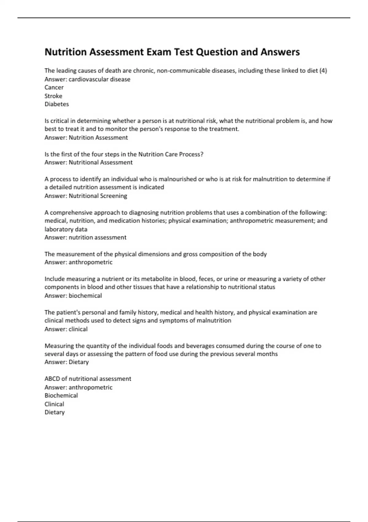 Nutrition Assessment Exam Test Question and Answers Nutrition Assessment process Nutrition Assessment pdf Nutrition Assessment methods Nutrition Assessment form Nutrition Assessment question and answers Nutrition Assessment exam