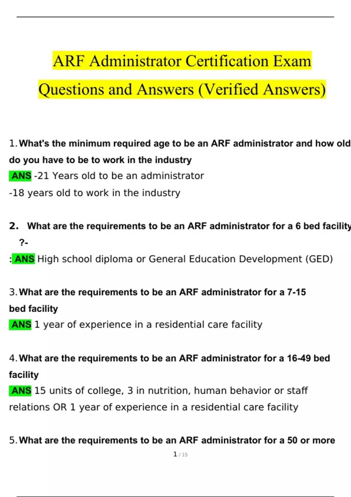 2. What are the requirements to be an ARF administrator for a 6 bed facility