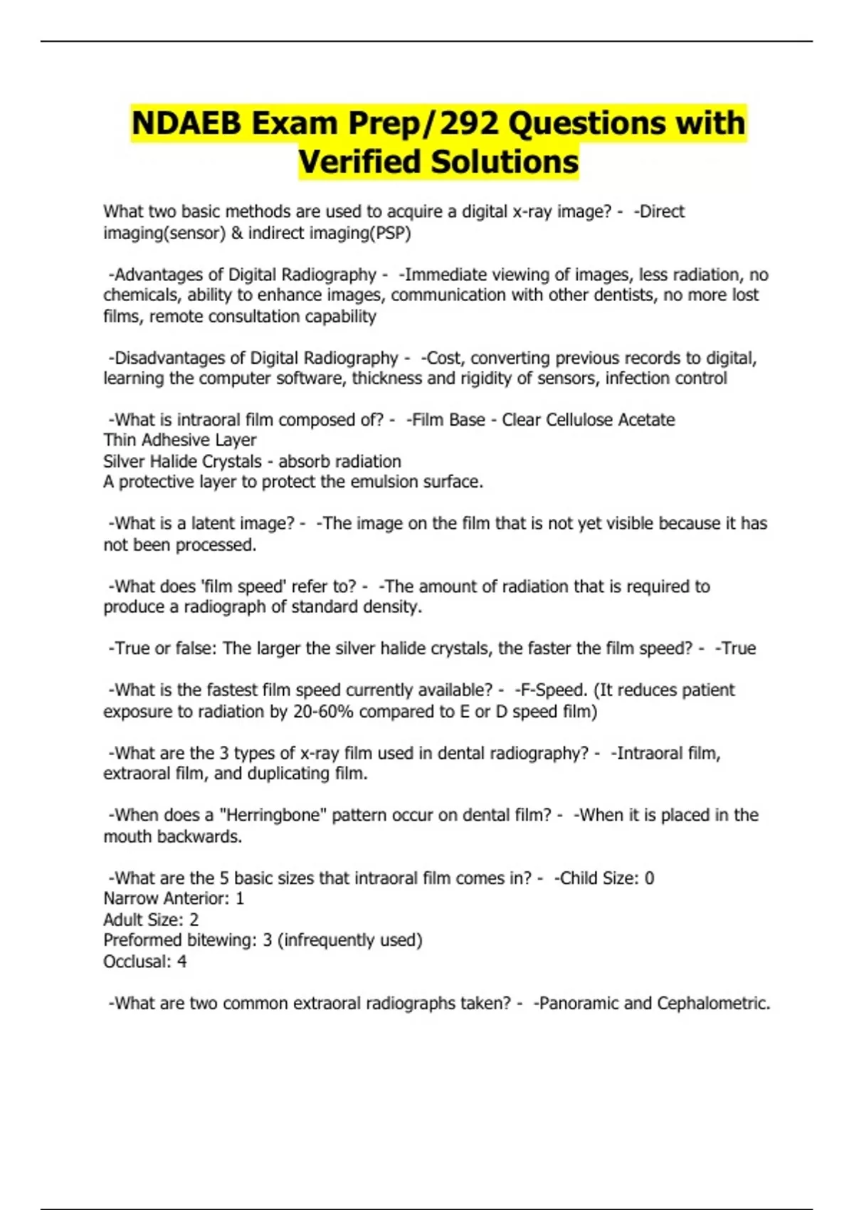 NDAEB Exam Prep/292 Questions with Verified Solutions