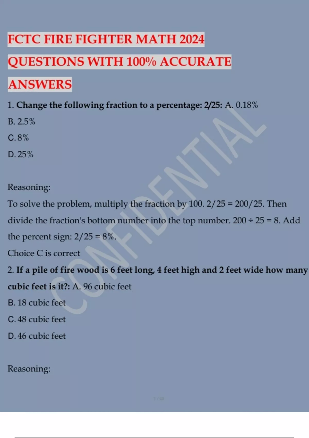 FCTC FIRE FIGHTER MATH 2024 QUESTIONS WITH 100% ACCURATE ANSWERS