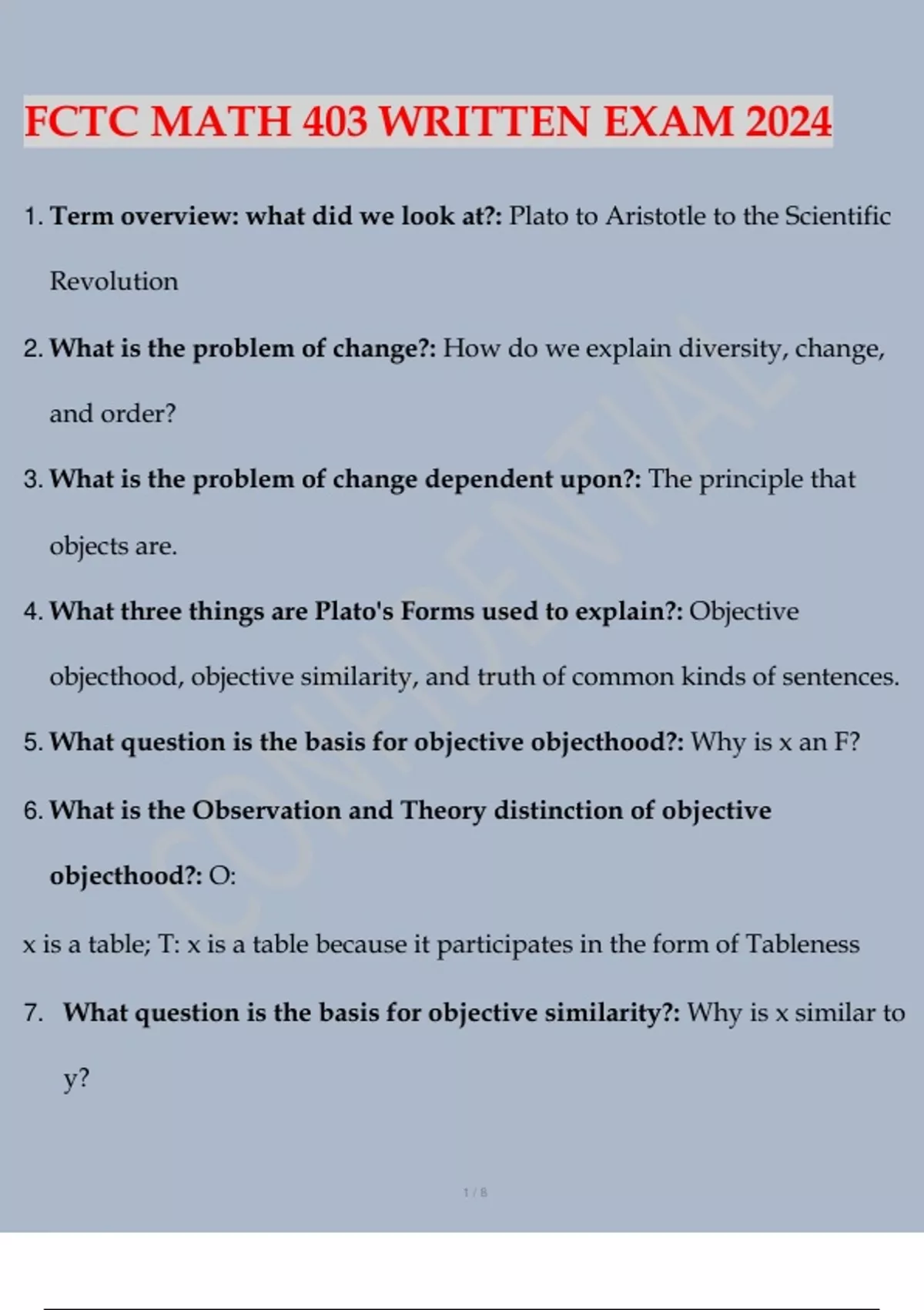 FCTC MATH 403 WRITTEN EXAM 2024