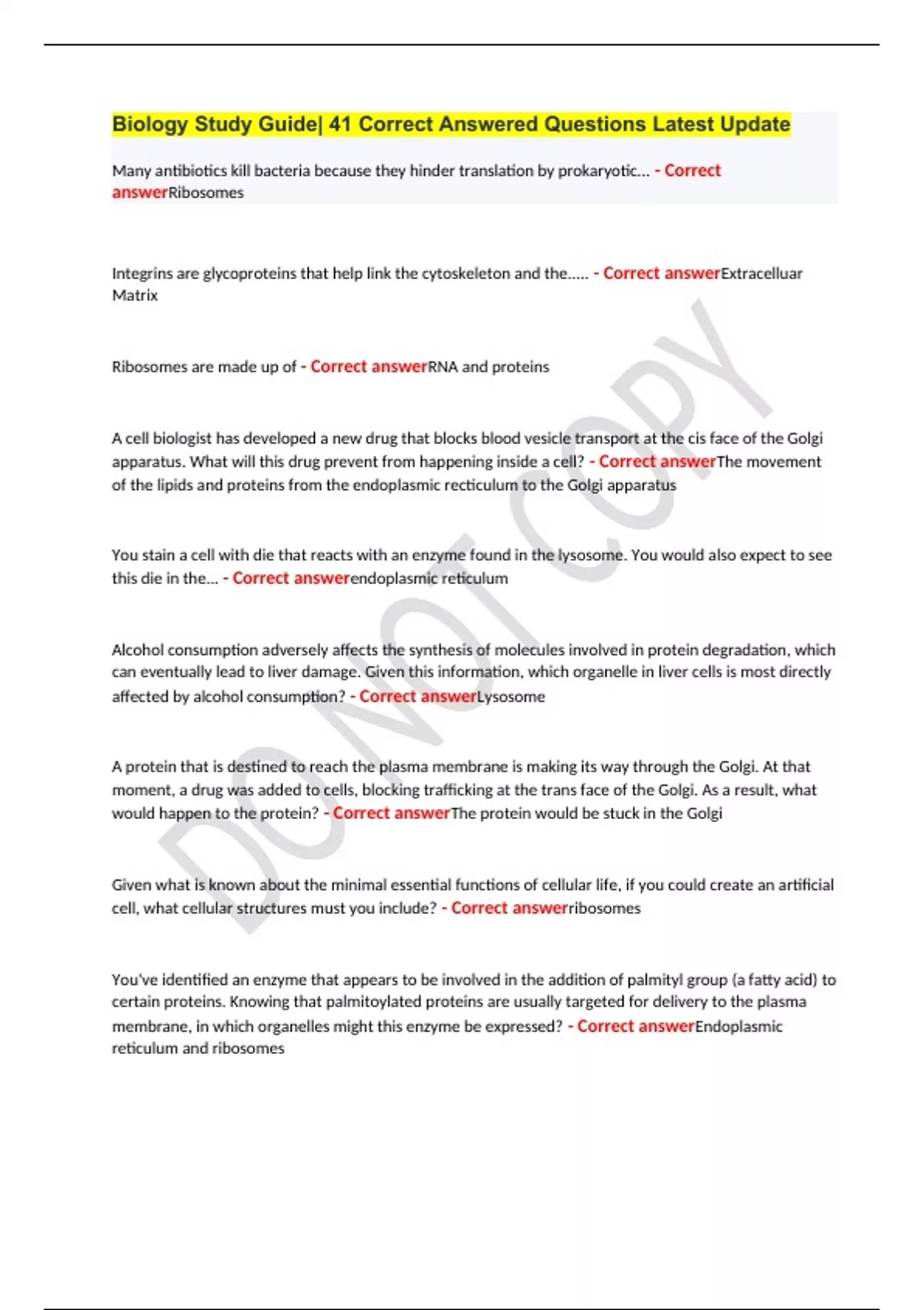Biology Study Guide| 41 Correct Answered Questions Latest UpdateBiology Study Guide| 41 Correct Answered Questions Latest UpdateBiology Study Guide| 41 Correct Answered Questions Latest Update