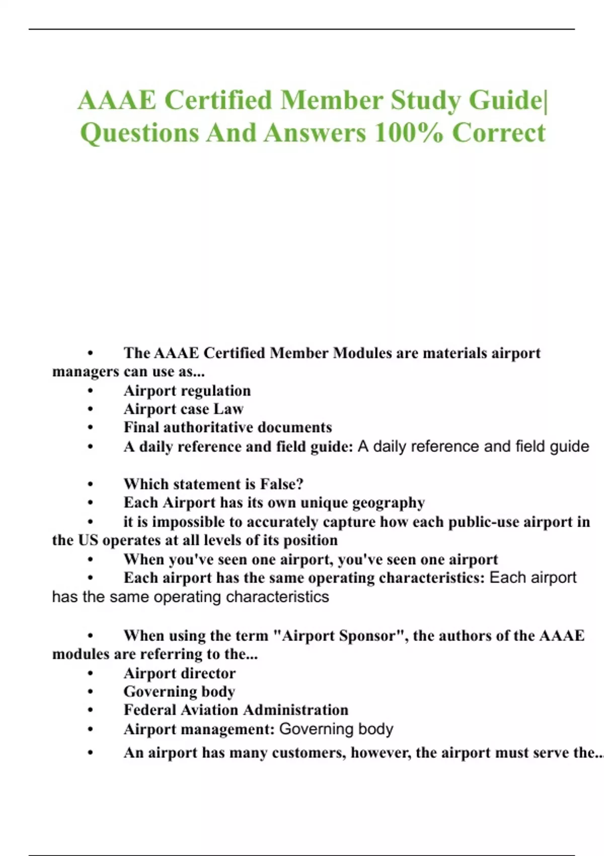 AAAE Certified Member Study Guide|390 Questions with 100% Correct Answers | Updated | Guaranteed A+