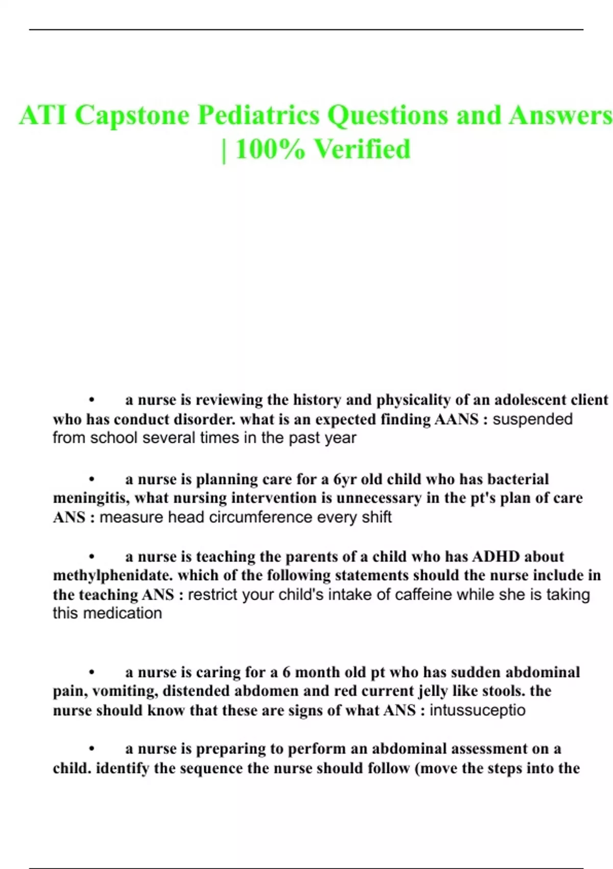 ATI Capstone Pediatrics Questions and Answers | 100% Verified