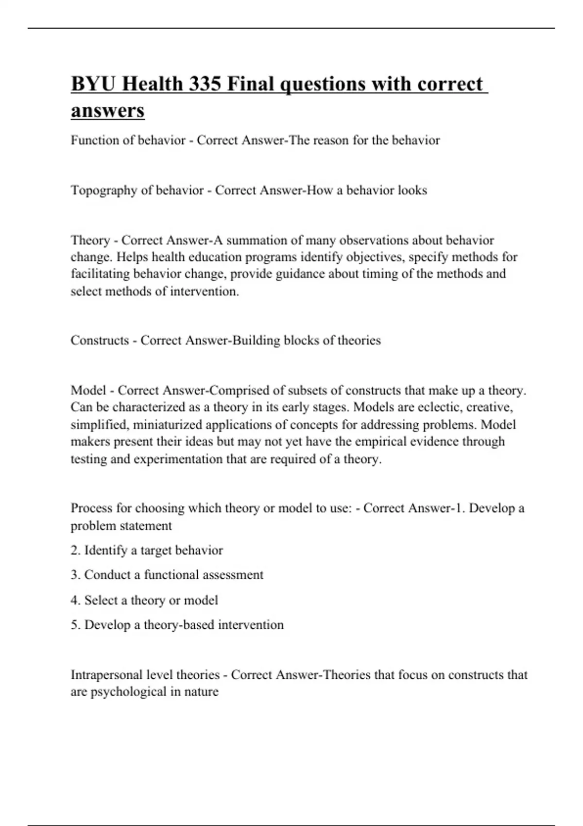 BYU Health 335 Final questions with correct answers.