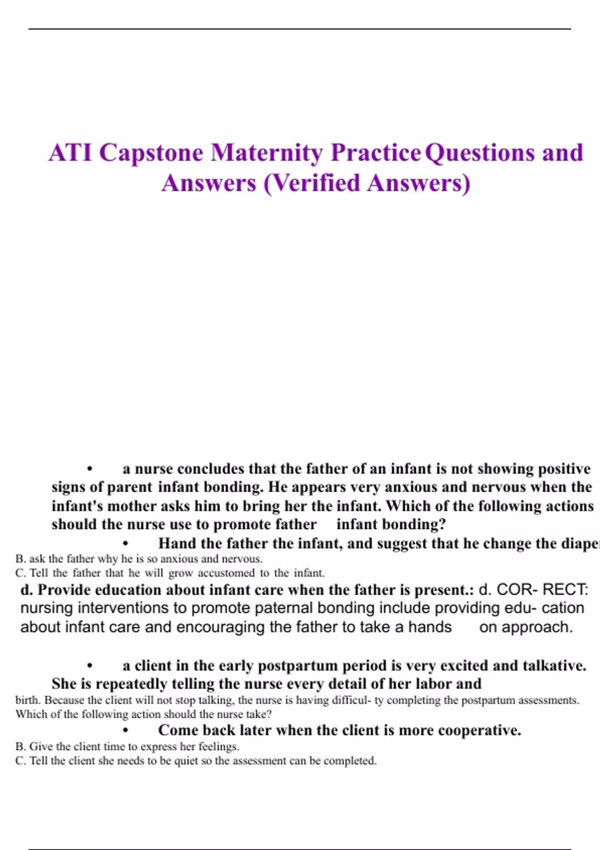 ati capstone maternity practice questions and answ