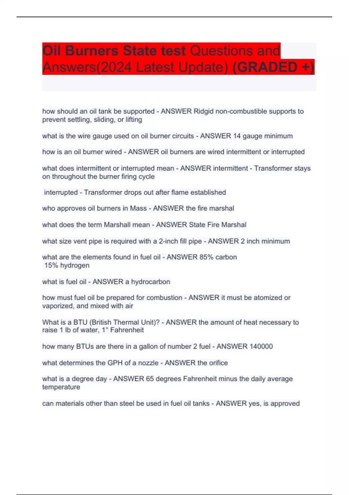 Oil Burners State test Questions and Answers(2024 Latest Update) (GRADED +)