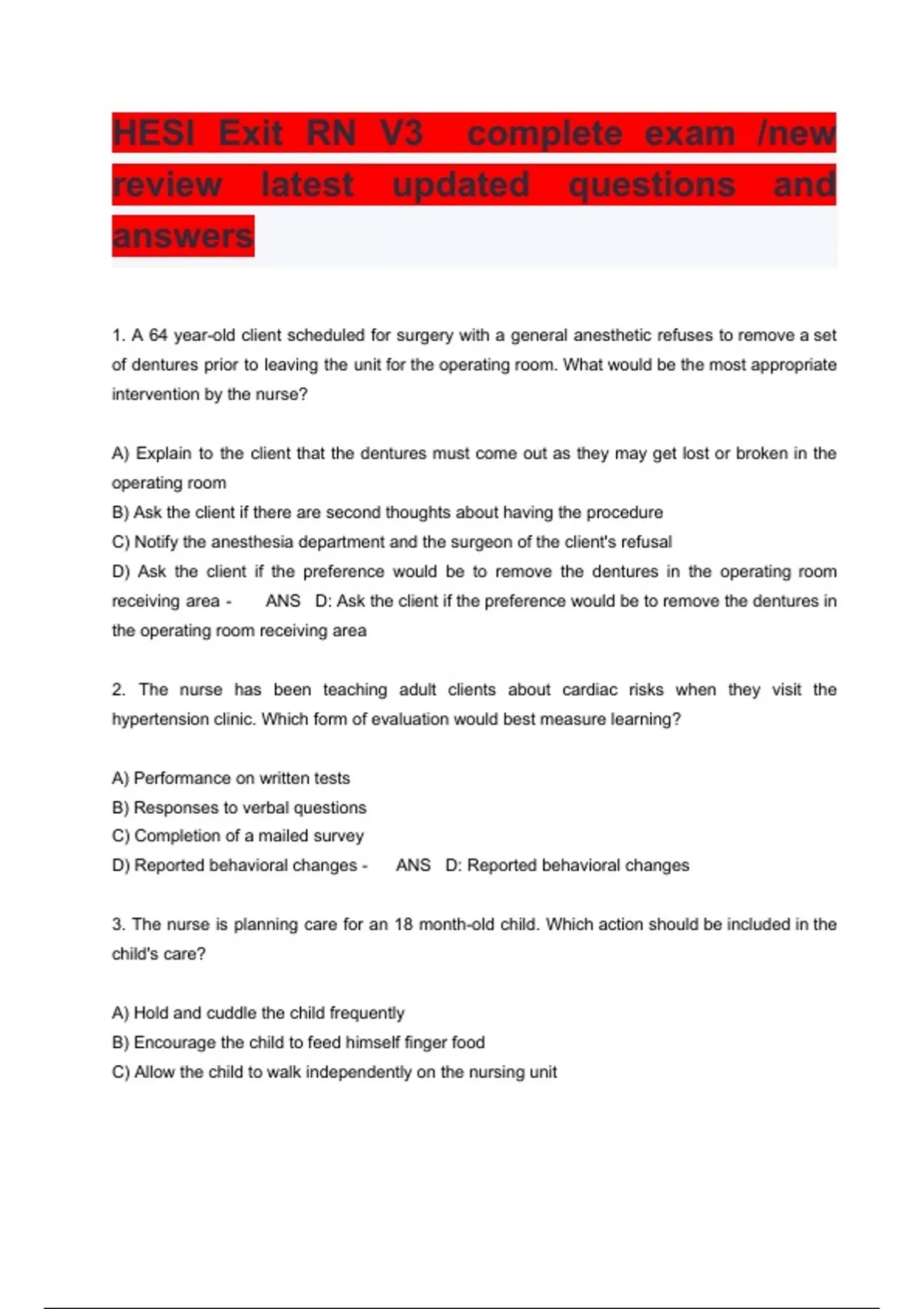 HESI Exit RN V3 complete exam /new review latest updated questions and answers