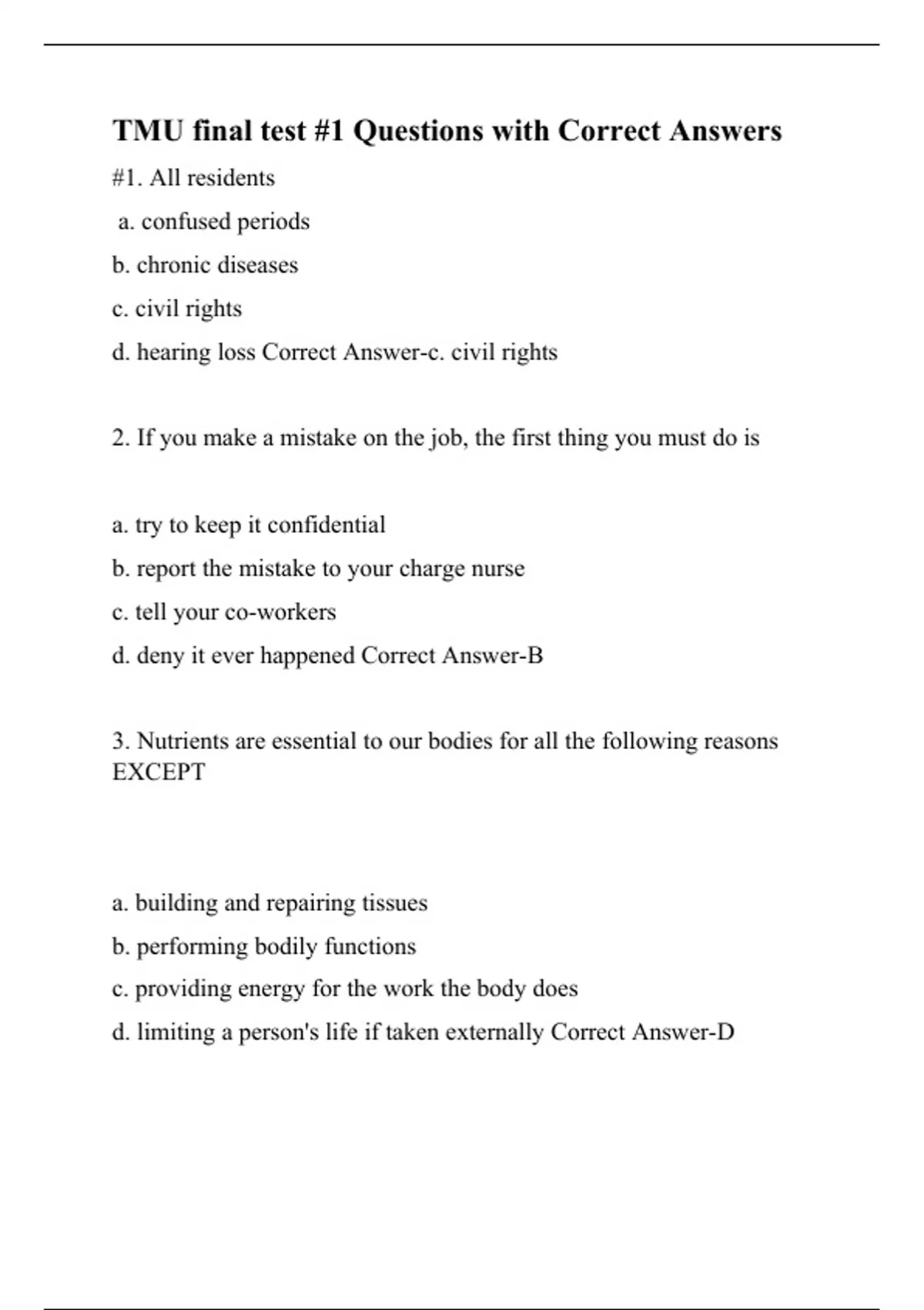 tmu final test 1 questions with correct answers