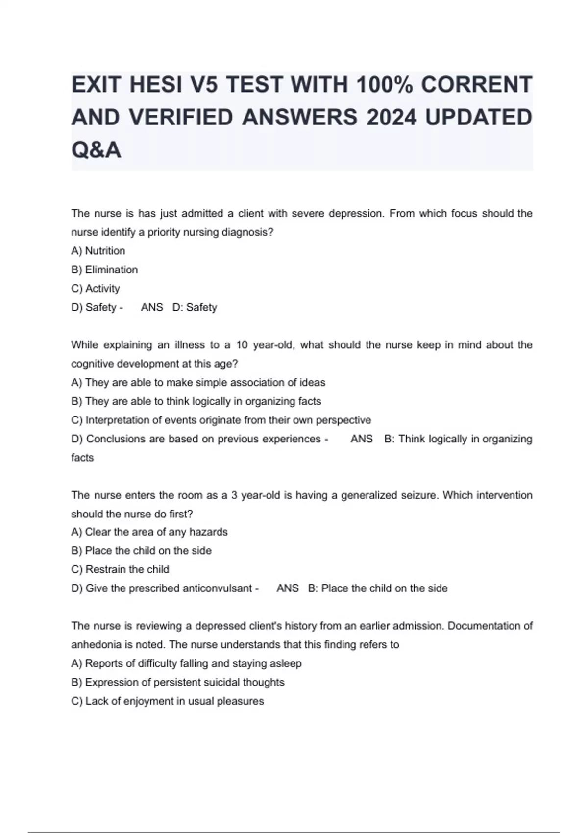 EXIT HESI V5 TEST WITH 100% CORRECT AND VERIFIED ANSWERS 2024 UPDATED Q&A