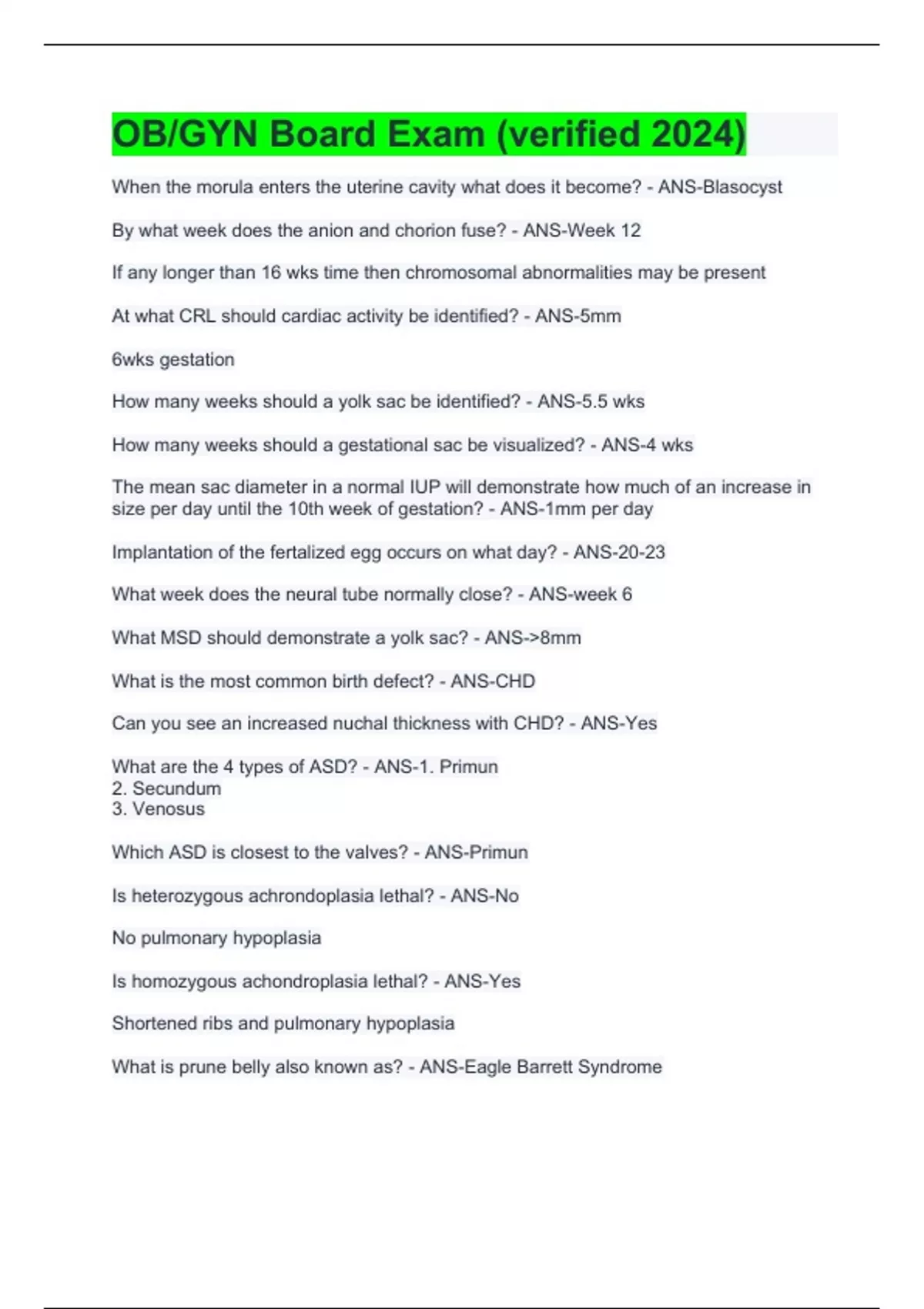OBGYN Board Exam (verified 2024)