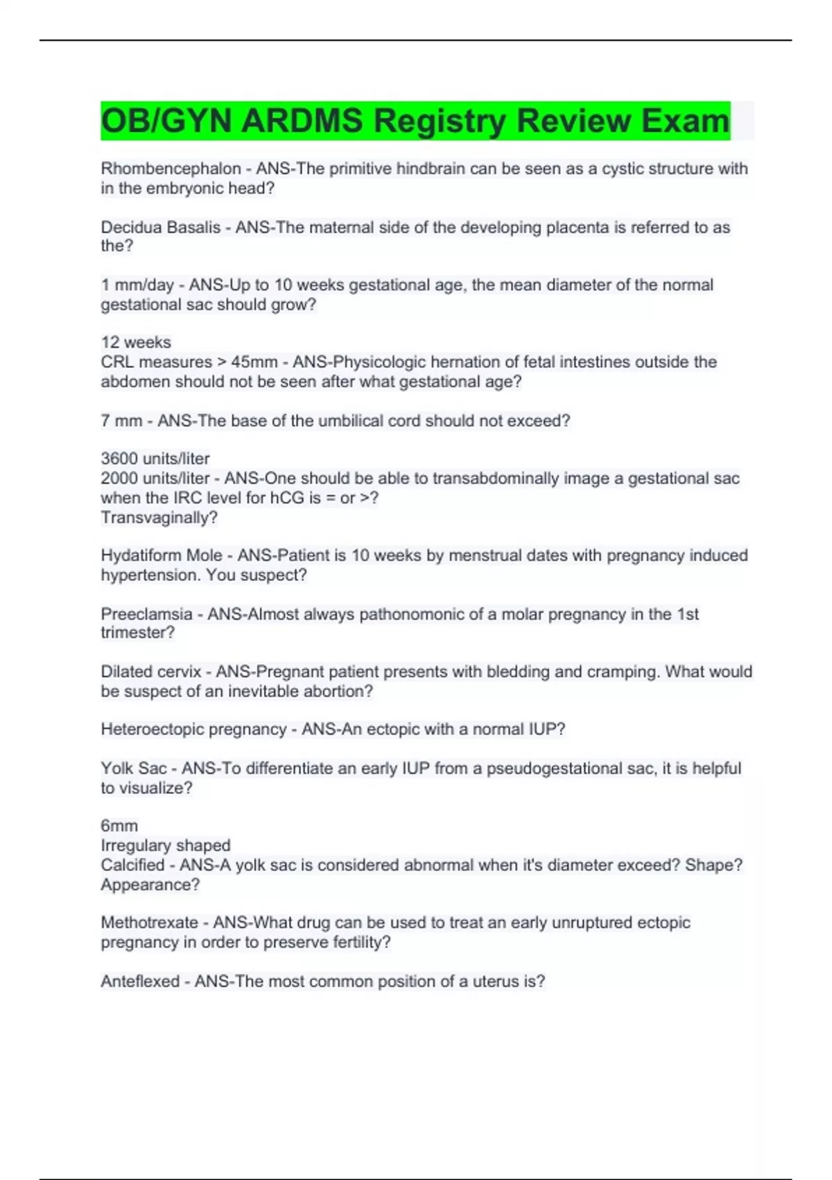 OBGYN ARDMS Registry Review Exam
