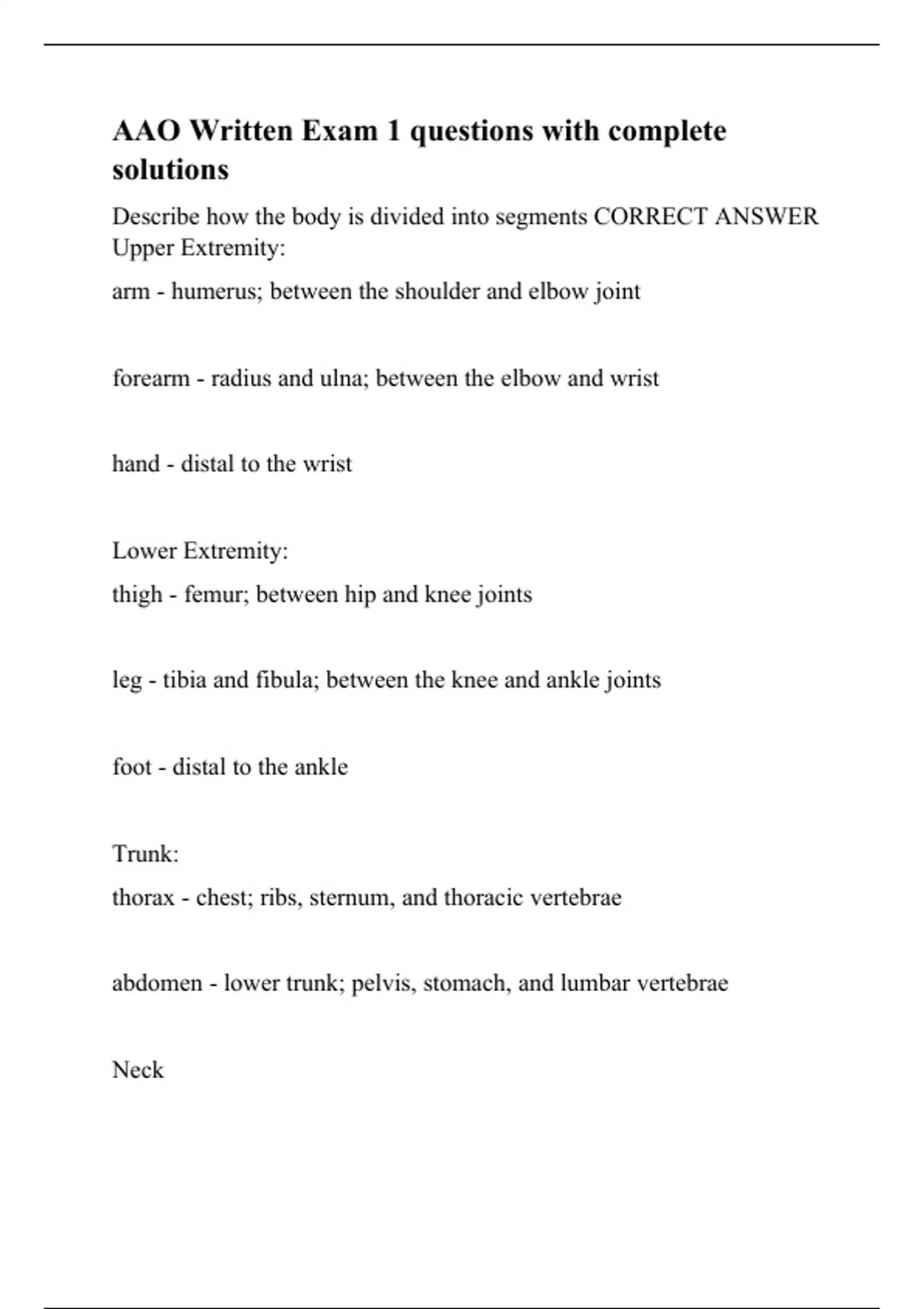 AAO Written Exam 1 questions with complete solutions