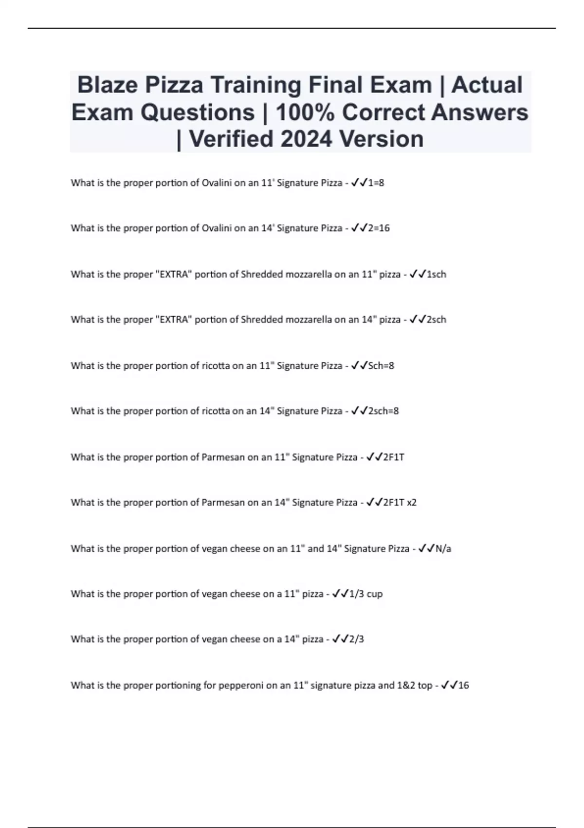 Blaze Pizza Training Final Exam | Actual Exam Questions | 100% Correct Answers | Verified 2024 Version
