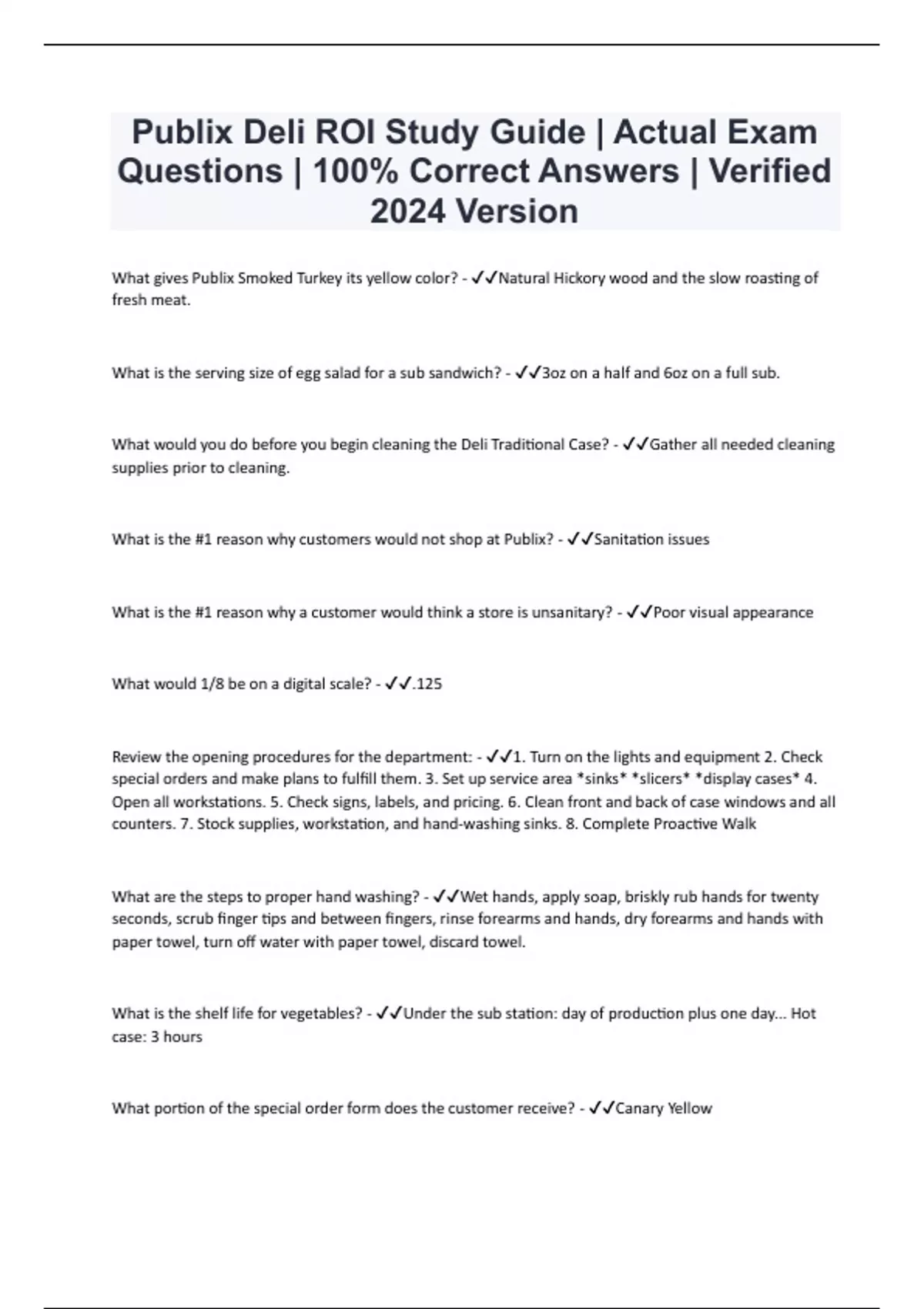 Publix Deli ROI Study Guide | Actual Exam Questions | 100% Correct Answers | Verified 2024 Version