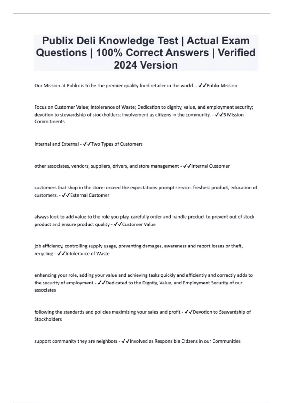 Publix Deli Knowledge Test | Actual Exam Questions | 100% Correct Answers | Verified 2024 Version