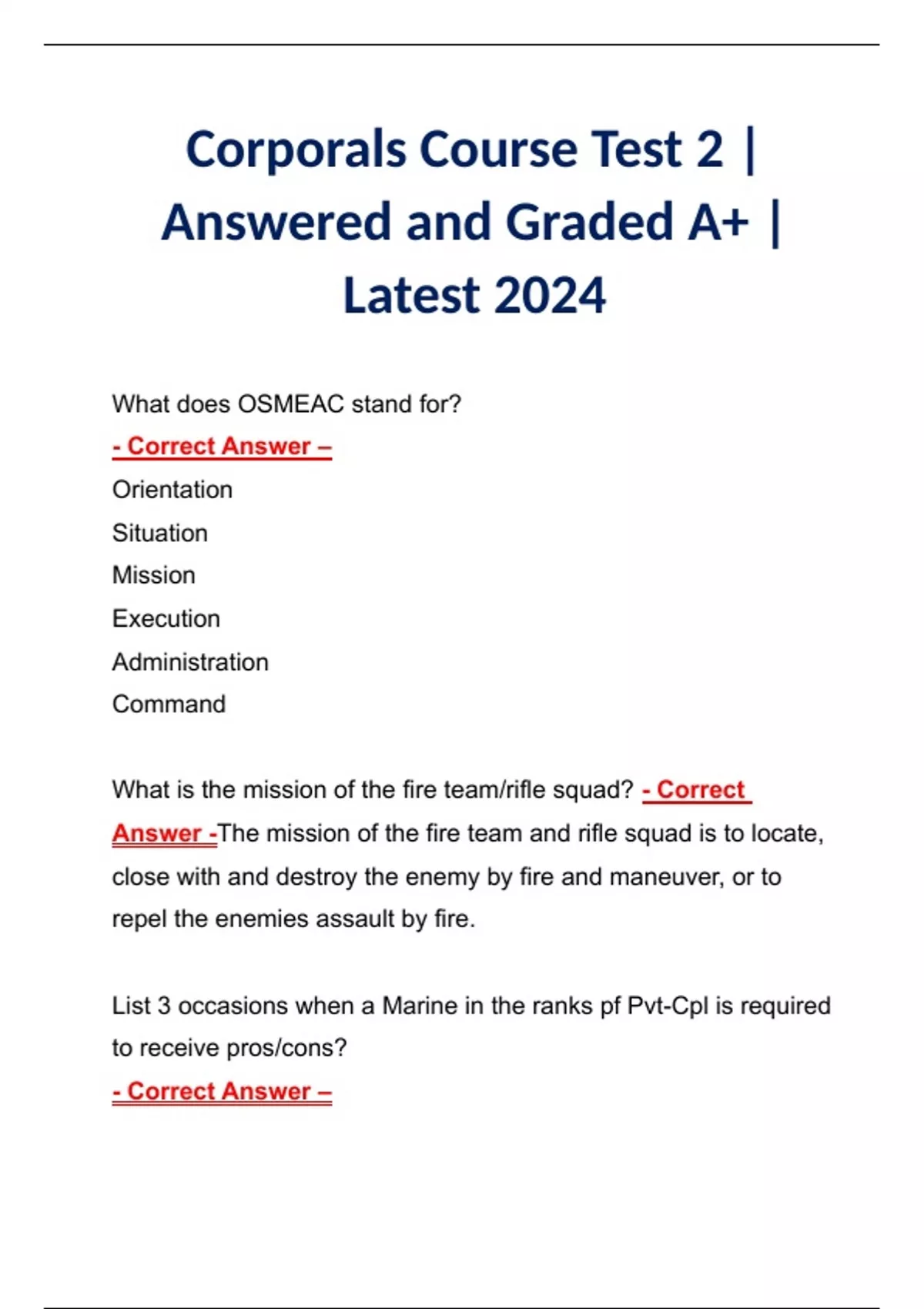 Corporals Course Test 2 | Answered and Graded A+ | Latest 2024 Corporals Course Test 2 | Answered and Graded A+ | Latest 2024 Corporals Course Test 2 | Answered and Graded A+ | Latest 2024