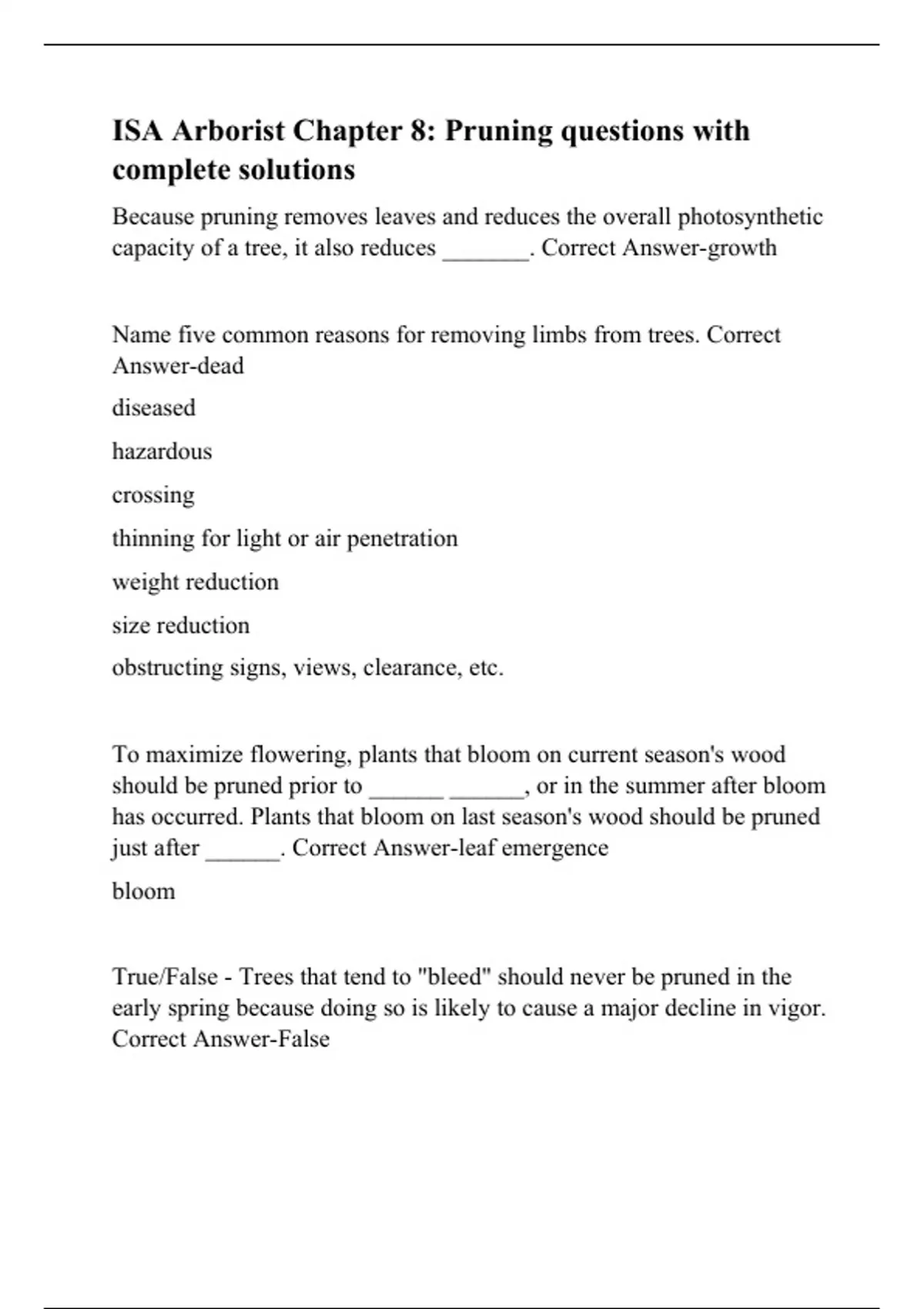 ISA Arborist Chapter 8: Pruning questions with complete solutions