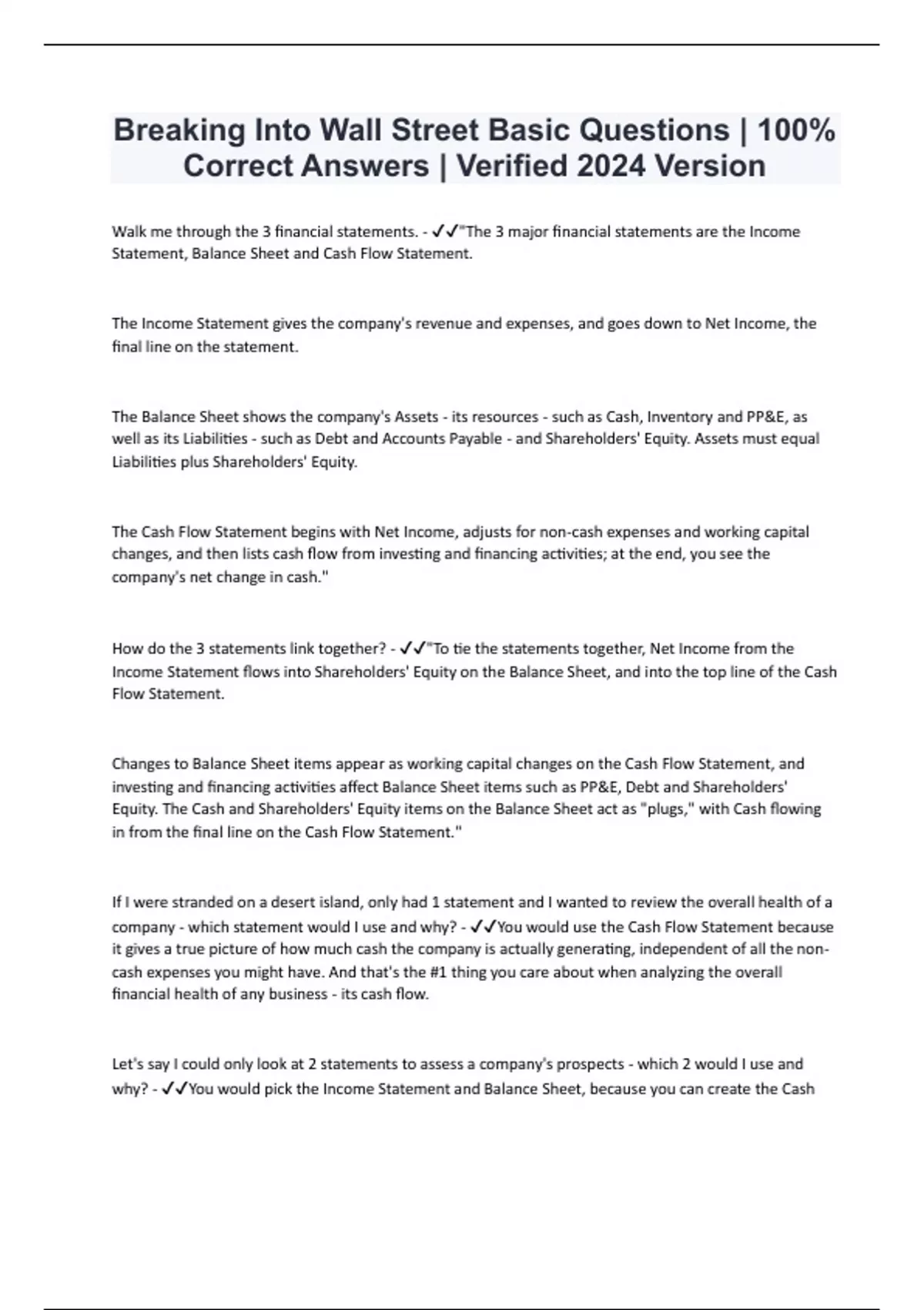 Breaking Into Wall Street Basic Questions | 100% Correct Answers | Verified 2024 Version
