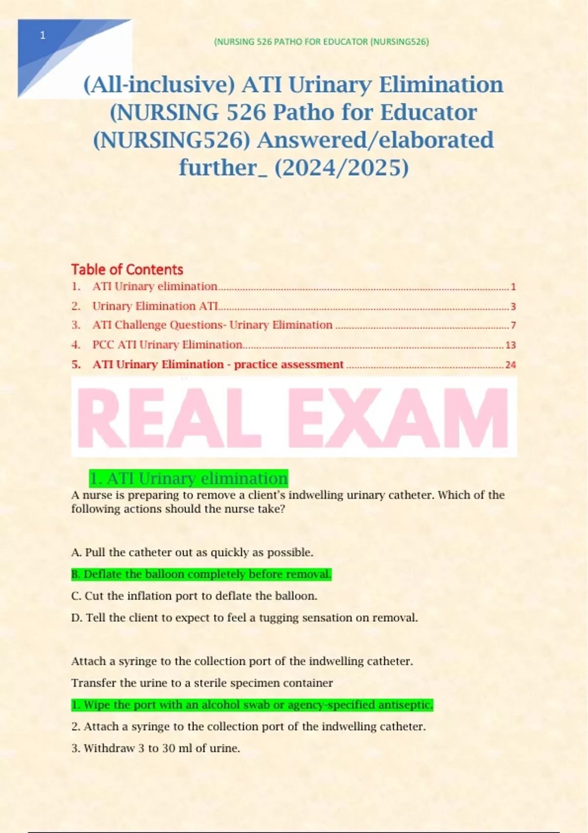 (All-inclusive) ATI Urinary Elimination (NURSING 526 Patho for Educator (NURSING526) Answered/elaborated further_ (2024/2025) Table of Contents 1. ATI Urinary elimination 1 2. Urinary Elimination ATI 3 3. ATI Challenge Questions- Urinary Elimination 7 4. PCC ATI Urinary Elimination 13 5. ATI Urinary Elimination - practice assessment 24