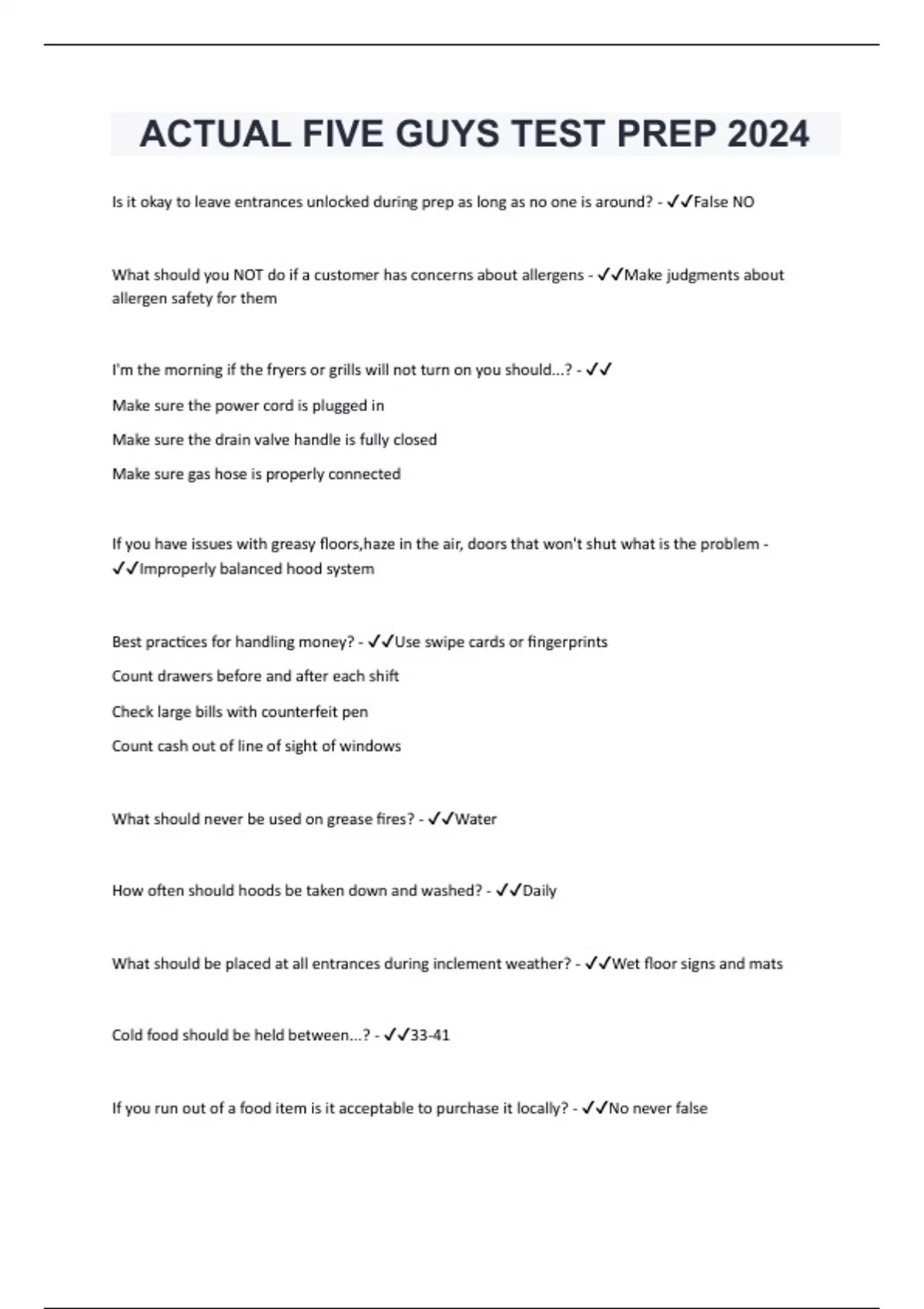 ACTUAL FIVE GUYS TEST PREP 2024