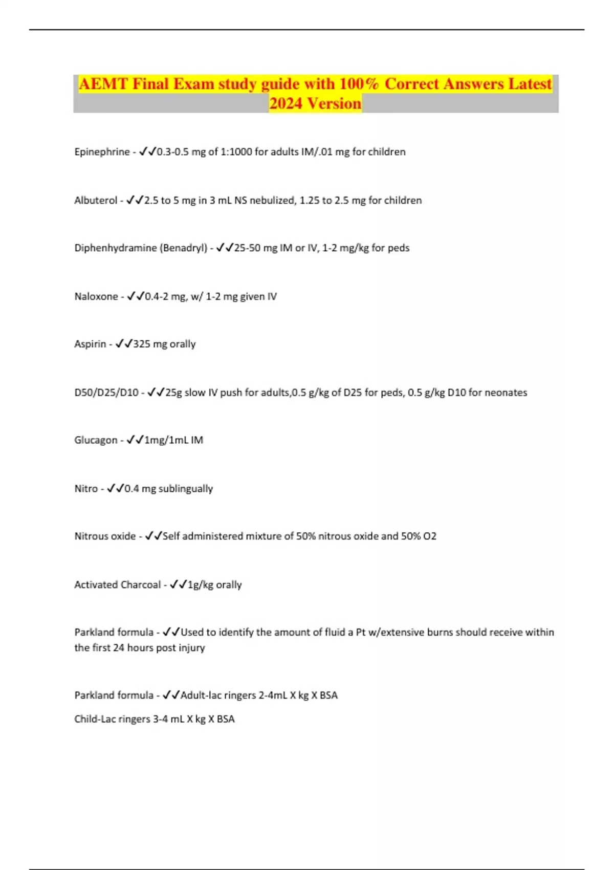 AEMT Exam study guide with 100% Correct Answers Latest 2024 Versio