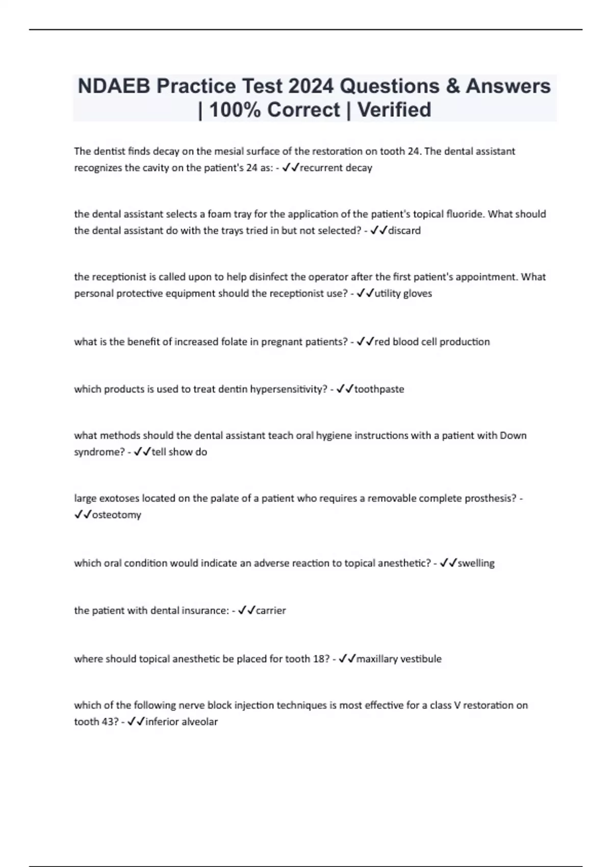 NDAEB Practice Test 2024 Questions & Answers | 100% Correct | Verified