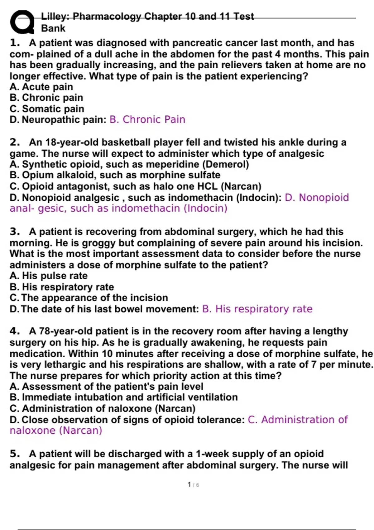 Lilley: Pharmacology Chapter 10 and 11 Test Bank questions with 100% verified Answers.