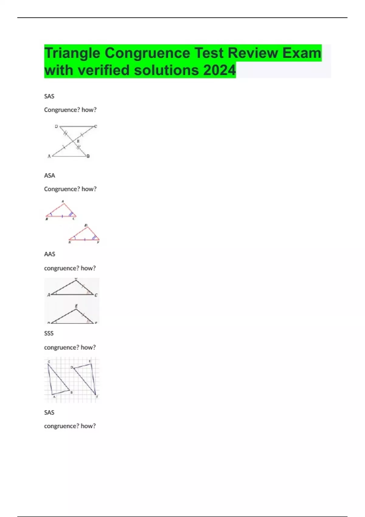 Triangle Congruence Test Review!! Exam with verified solutions 2024