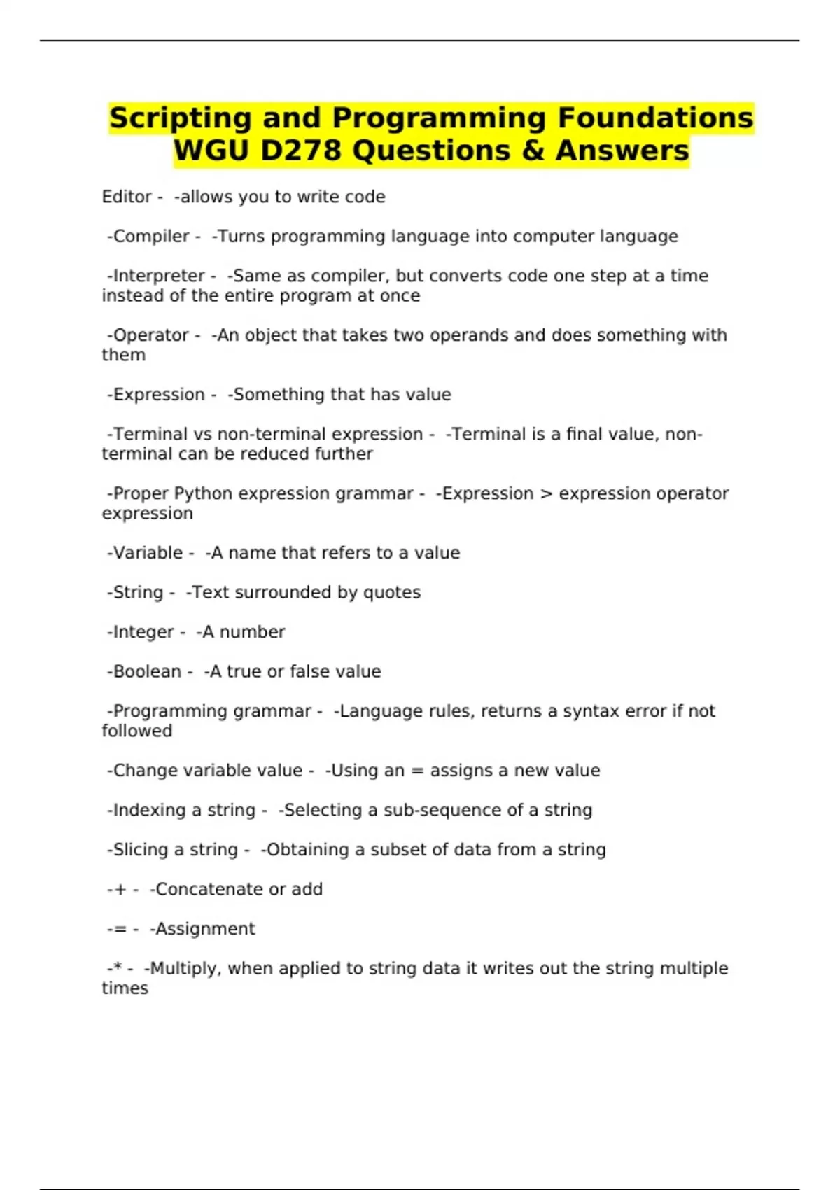 Scripting and Programming Foundations WGU D278 Questions & Answers
