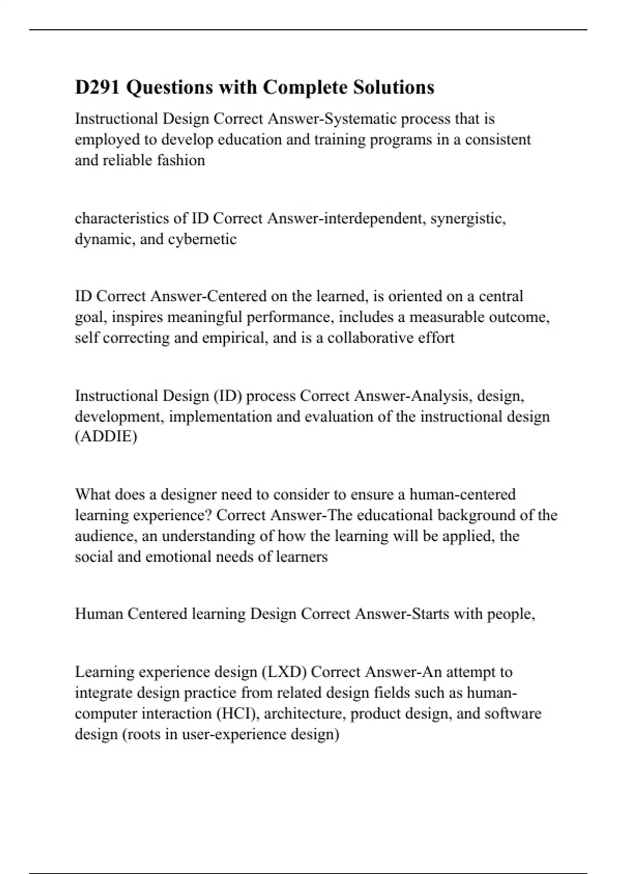 d291 questions with complete solutions