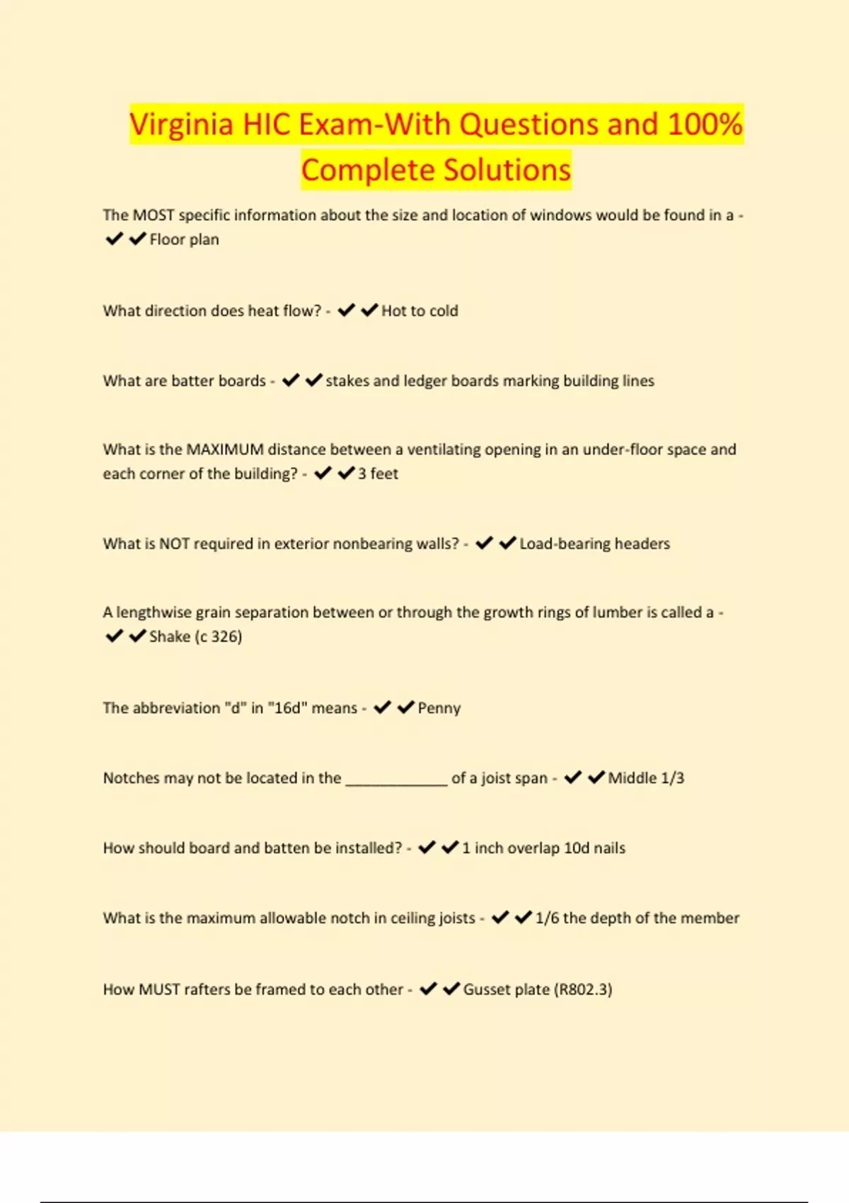 Virginia HIC Exam-With Questions and 100% Complete Solutions