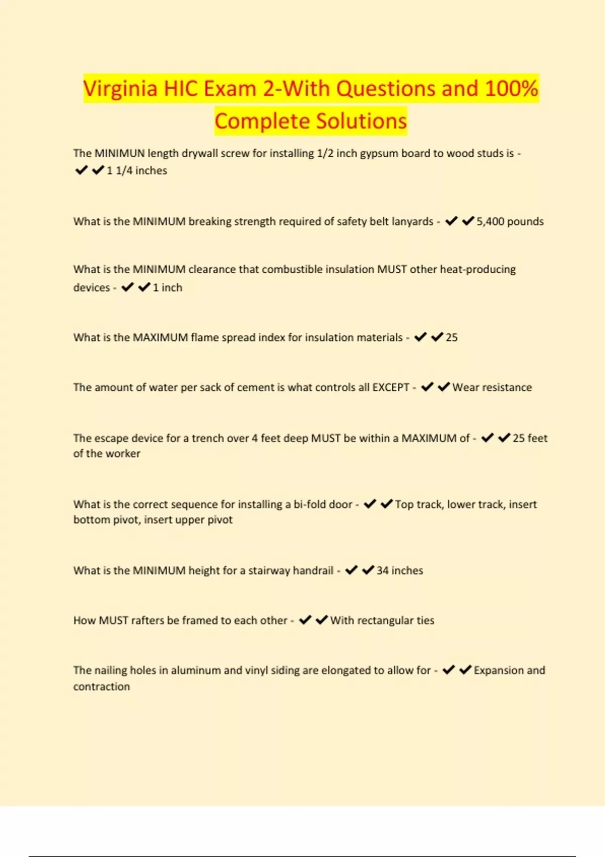Virginia HIC Exam 2-With Questions and 100% Complete Solutions