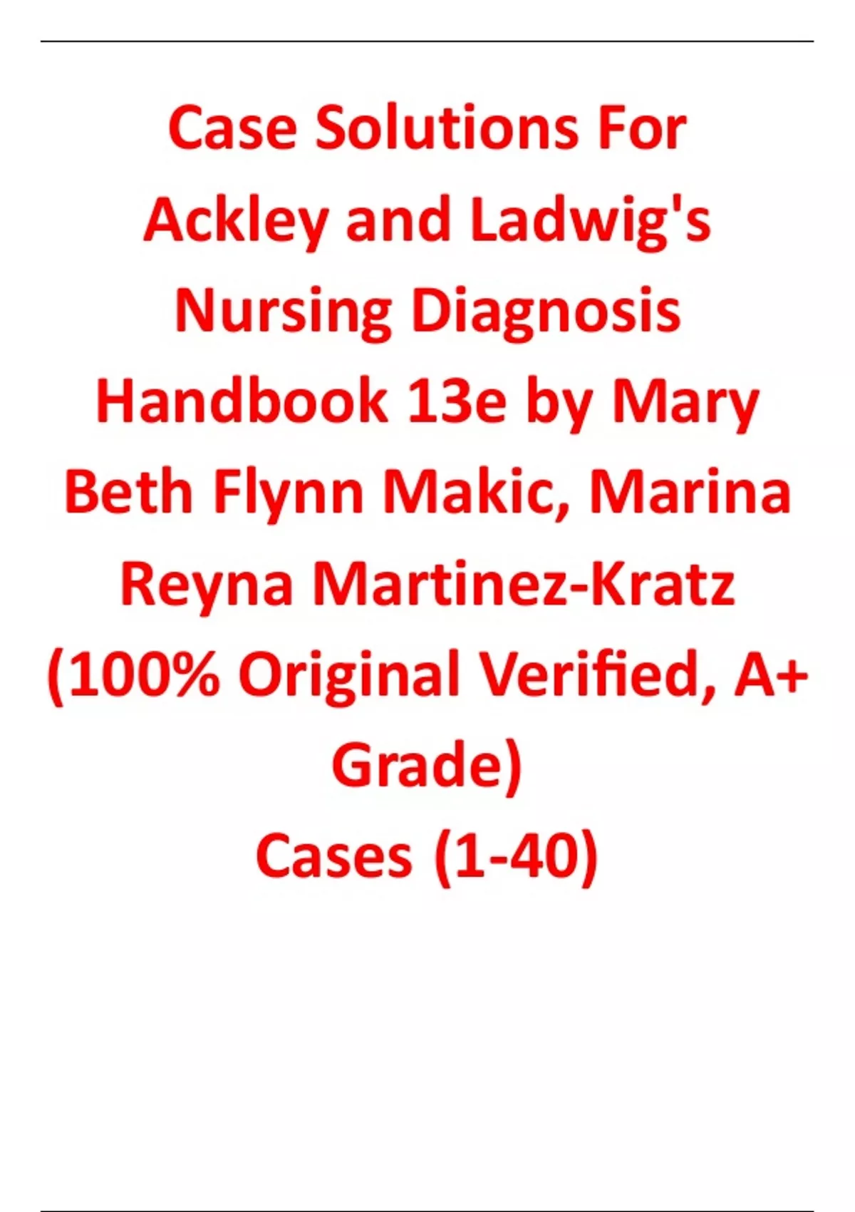 This Is Original 13th Edition of Case Solutions From Original Author. All Other Files in the market are fake/old Edition. Other Sellers Have changed old Edition Number to new But Case Solutions is old Edition. Case Solutions for Ackley and Ladwig's Nursing Diagnosis Handbook 13th Edition By Mary Beth Flynn Makic, Marina Reyna Martinez-Kratz (100% Original Verified, A+ Grade Case Solutions for Ackley and Ladwig's Nursing Diagnosis Handbook 13e By Mary Beth Flynn Makic, Marina Reyna Martinez-Kratz (100% Original Verified, A+ Grade