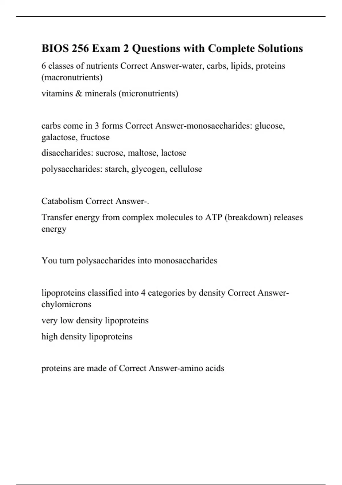 BIOS 256 Exam 2 Questions with Complete Solutions