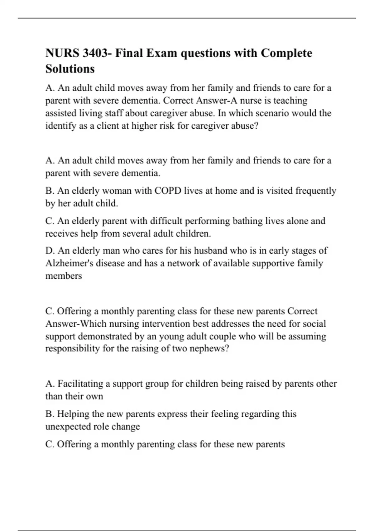 NURS 3403- Final Exam questions with Complete Solutions