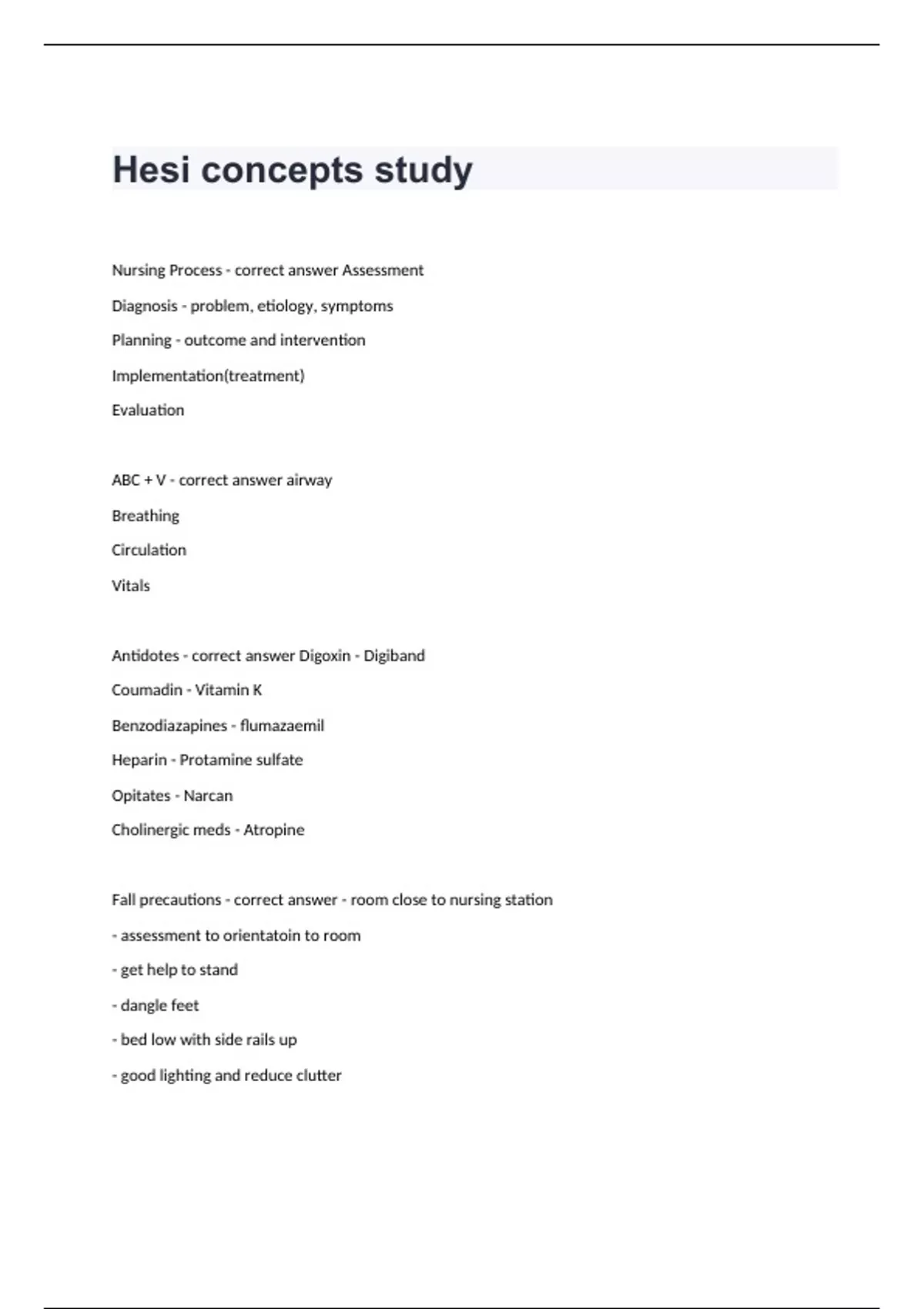 Hesi concepts study Guide Review Question And Correct Answers.