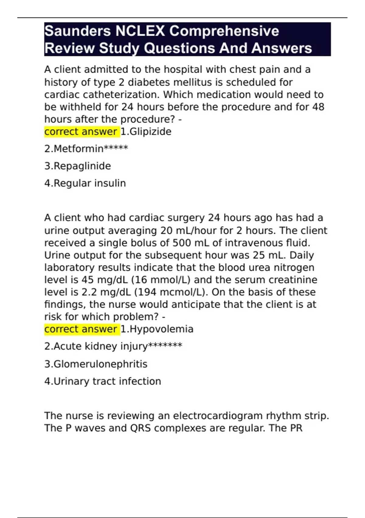Saunders NCLEX Comprehensive Review Study Questions And Answers