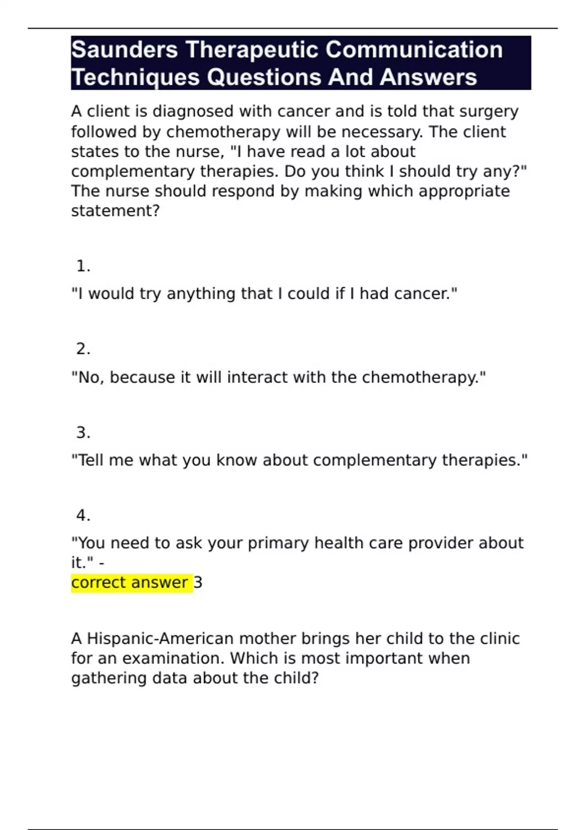 Saunders Therapeutic Communication Techniques Questions And Answers